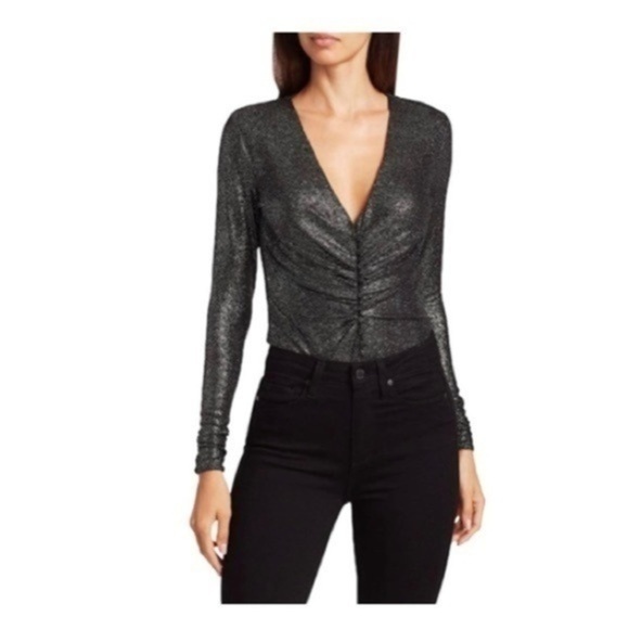 Dance the night away in this sparkling, sultry bodysuit, which can be neatly tucked into skinny jeans or a mini skirt.