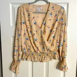Light peach Scripted blouse from SAKS size small. Great condition!