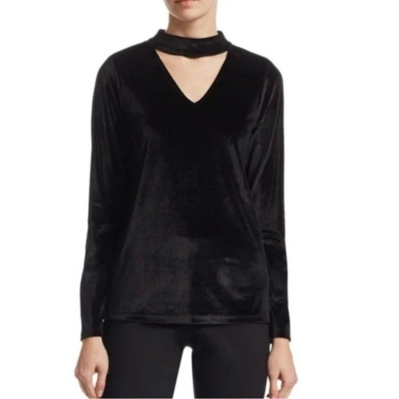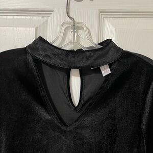 Scripted velvet black top