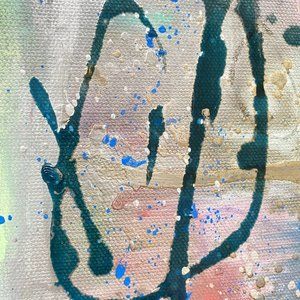 This piece exudes the action the artist takes in slinging paint during her creation process, including the fun oil paint marker splatters that dance across the painting's surface.