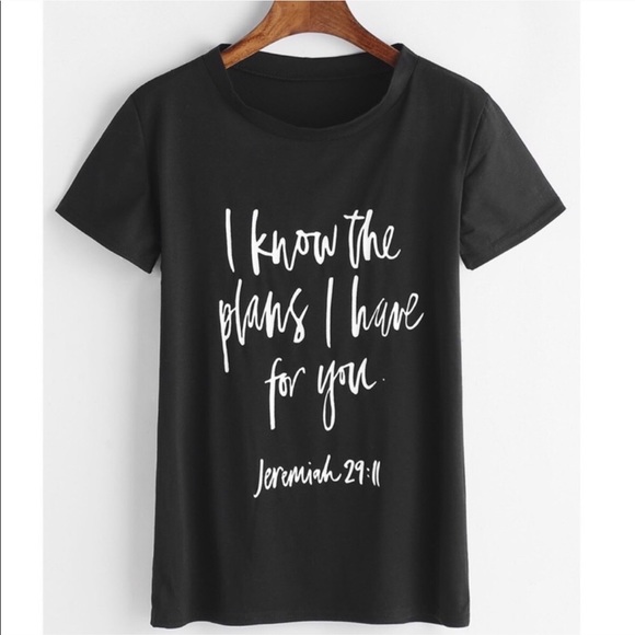 Jeremiah 29:11 printed t-shirt “For I know the plans I have for you” A great statement shirt A constant reminder of HIS love for us Makes a perfect gift to a friend, spouse, family member or yourself! BIN B1