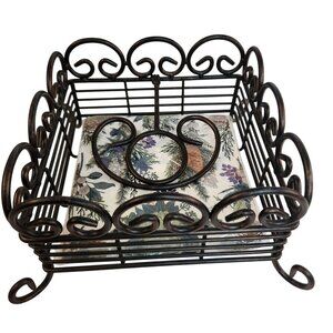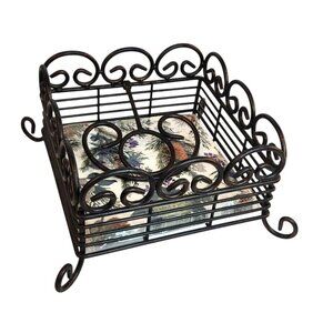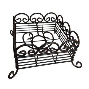 Scrolled Cast Iron Napkin Holder Rustic Tabletop Design Decorative Black Square