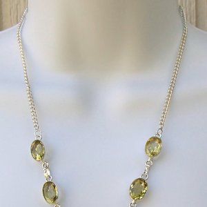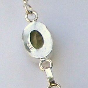 The necklace is set in .925 silver. It's stamped on the back of one of the Peridot settings. The Peridot's are faceted. Please see photos! The attached chains are not stamped.