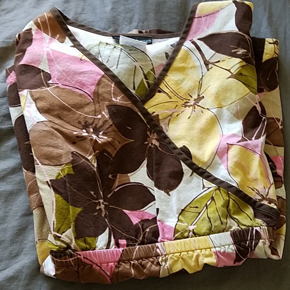 Floral print scrub with 2 standard pockets and elastic waist