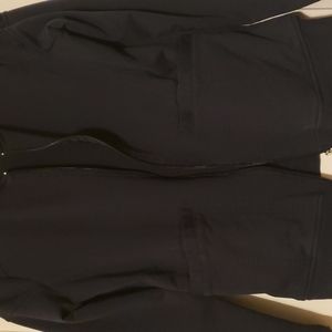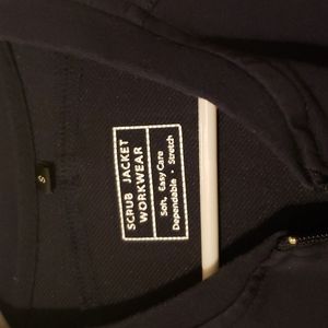 Navy Blue Scrub "jacket". Hoodie type material, small but runs a little big. I wore once and it was just too big. Just puchased about 2 weeks ago. My loss, your gain!