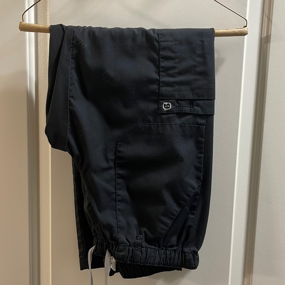 Black Wonder Wink scrub pant. Size small petite. Straight leg with vented cuff. Side pockets and back pockets.