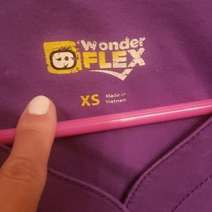 Purple Scrub Set. Top is XS. Bottoms are XS Petite with 27 inch inseam. Small stain on left front pocket of top. See photo.