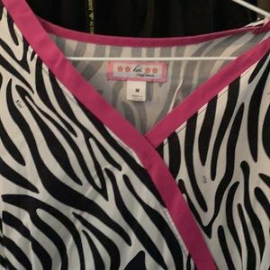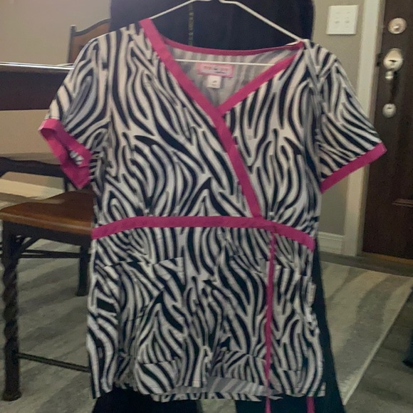 Top is mock wrap Koi size Medium and pants are Med Couture size small NWOT