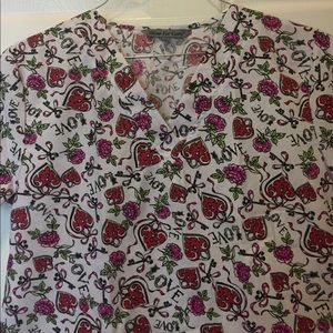 Adorable brand new scrub top. I was gifted 2 & only need 1. Flowers, keys, Love. So fun!!! Brand new with tags. Size XS