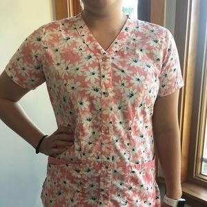 Style: “Daisy Mae Petunia Floral Snap Front”