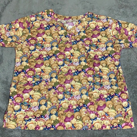 Teddy Bear Scrub Top Size Large