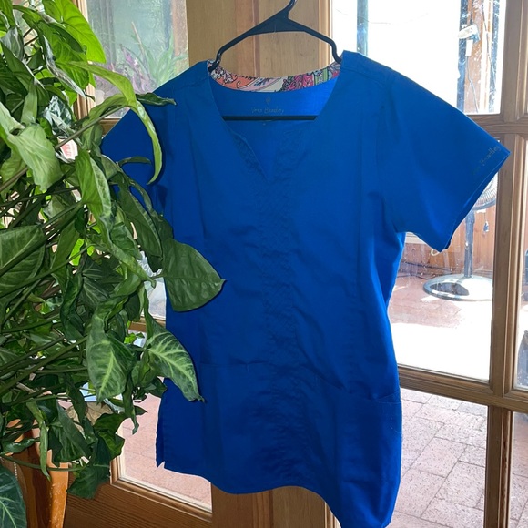 Cute scrub top in great shape! Can no longer wear due to color change for new job. Pockets in front and size XS.