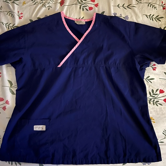 Stylish Urbane scrub top in navy with a pink accent. Perfect for professionals.