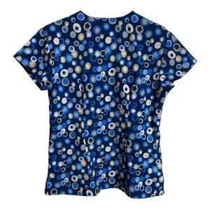 Scrub Top Divine Stretch Size Small Blue Print Front Pockets V Neck