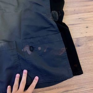 Scrub star black and grey top has bleach stains. size XS but fits like a S