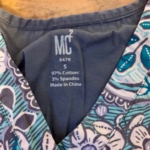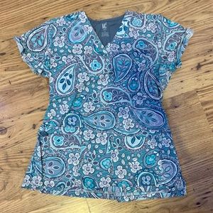 Green and white MC scrub top is a size S and is very cute.