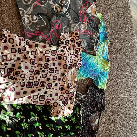 Bundle of 5 scrub tops. Mostly brand new a couple never worn, been folded and kept away.
