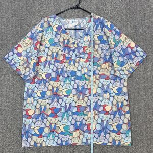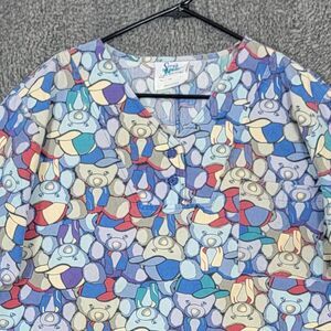 Scrub Wear Scrub Top Womens Large Blue Multi-Color Bears Print V Neck Nurse.