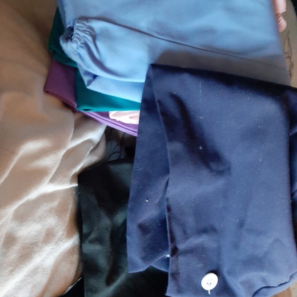 6 scrub caps in navy blue, light blue, black, teal, pink and purple all new. Only tried on one then didn't need them asking $30 for all 6 or best offer.