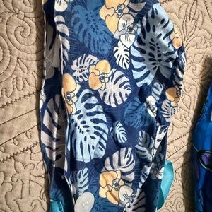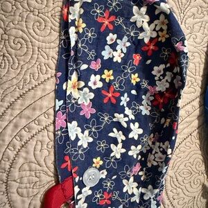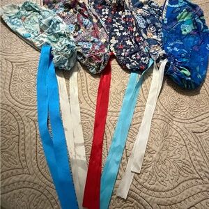 5 scrub caps with different designs with ponytail and ribbon