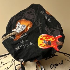 Black rock guitar hat and skulls with a built in sweat band in good used condition.