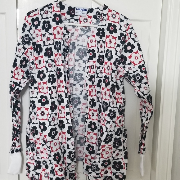 Black, white and red flower scrub cover for those chilly hospital halls