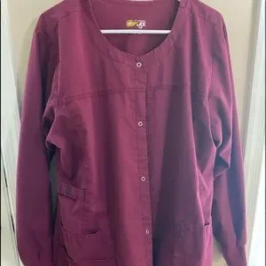 Scrub jacket very comfortable. Small bleach spot, not really noticeable