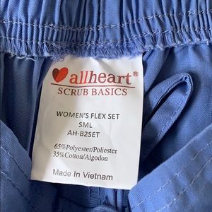 Drawstring scrub pants. 4 pockets total- 2 at waist and 2 on right leg. Color is as pictures. Fits true to size (as scrubs usually run large). Never worn