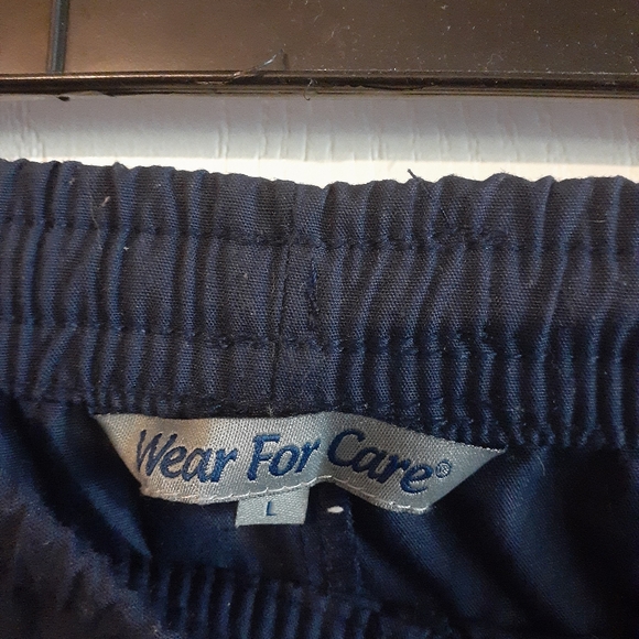 Navy blue, worn once, elastic waist and drawstring, scrub pants. Very comfortable. like new.