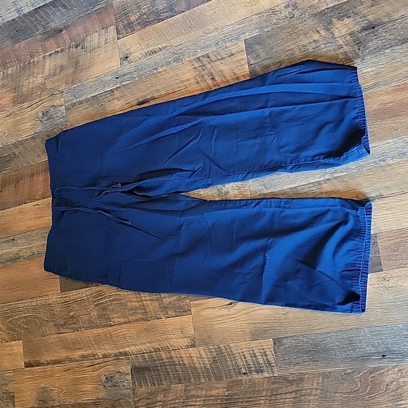 SBscrubs scrub pants size S, navy blue in color, front pockets, one rear pocket and side leg pocket.