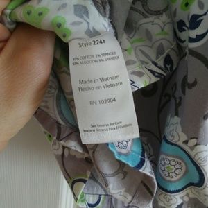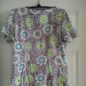 Scrub set with Beautiful vibrant colors. Top is size Small scrubs and beyond brand, bottom is wide leg NrG by Barco size small. Top only used maybe 3 times, bottom is in good used condition, couple of spots shown on last 2 pictures. Love this set, I changed jobs and now have to wear different colors. Open to offers