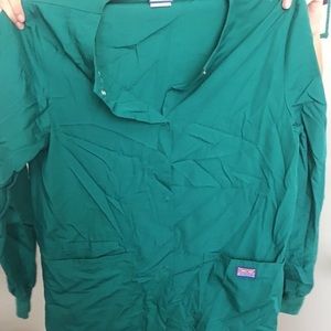 Cherokee brand scrub set include jacket, top and bottoms. Jacket/top-XS Bottlms-S