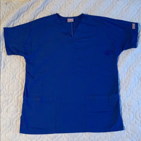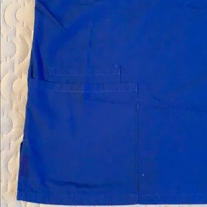 Royal blue scrub set. Top has three pockets as shown in pictures and a v neck. Top is xs. Pants are xxs. Pants have one pocket on the back and are draw string to make for an adjustable fit around the waste. Willing to sell individually.