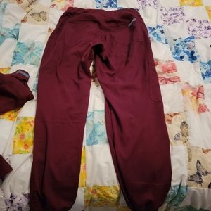 Selling my xs top/bottom maroon med couture joggers! Great condition, washed and hung dry! The waist drawstrings for pants came our during a wash!