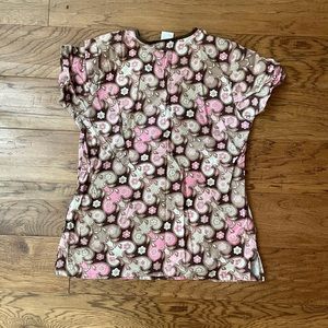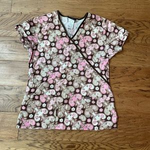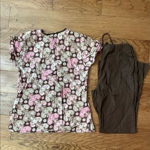 Two piece scrub set, pink and brown, like new.