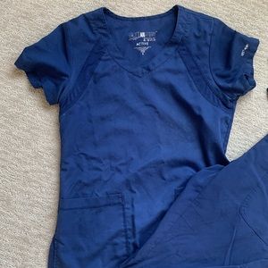 Gently loved scrub set. Small spot on back of pant leg as seen in photo. No other damage.