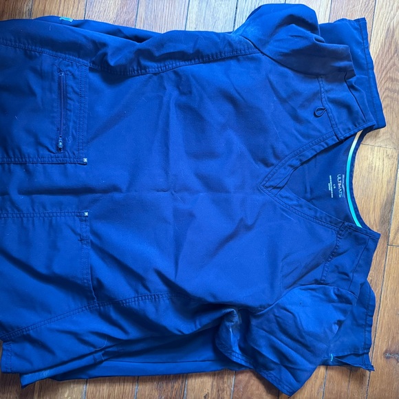 Top & bottom both size large - Bought from Walmart- navy blue, boot cut, deodorant stain on the top but I haven’t noticed it until today
