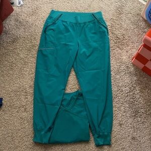 Infinity brand scrub set colored green, LARGE bottoms MEDIUM size top great condition
