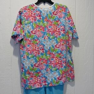 Scrub set-top is scrub wear and bottom is Wonder work both are size medium very good condition they are Gently Loved. Have a lot of life left in them. Please see video 4 pretty color detail uniform hospital nursing home nursing care doctor's office