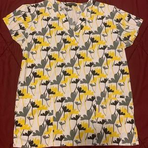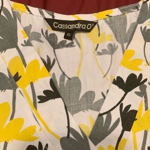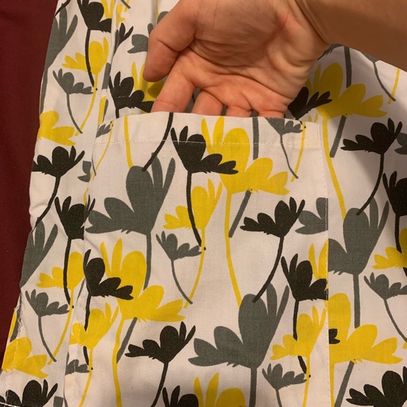 Yellow, grey, black flower pattern! XS size, Cassandra pre worn but like new no stains or damage! Deep pockets