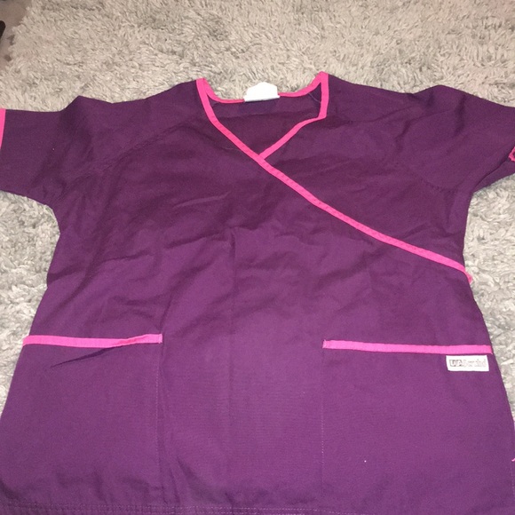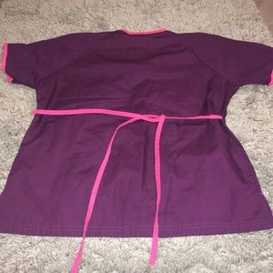 Pink & purple tie back scrub top.