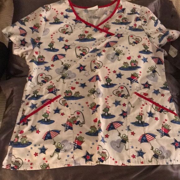 Female Size medium patriotic scrub top 2 pockets in front WILL BUNDLE WITH OTHER SCRUB TOPS & BOTTOMS