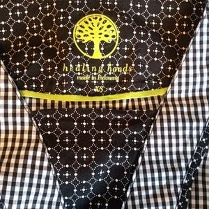 Super cute and comfy! Not your usual scrub top. Cute black and white babydoll style scrub top with two large pockets and attached draw string for that perfect form for. No stains, tears, or snags. Excellent condition.