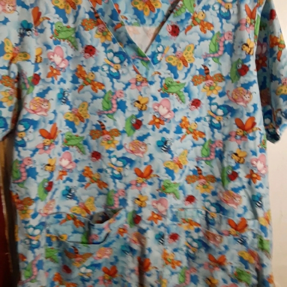 Landau scrub top. All types of tiny outdoor creatures! Total of 4 pockets on front. Would go with many colors, please see the scrub bottoms I will be listing, I am happy to bundle. Good used condition with no holes or stains. Size medium.