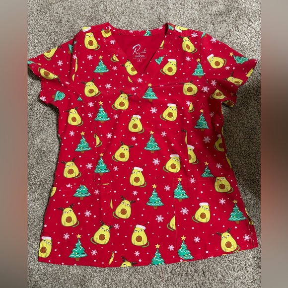 Red Christmas cat scrub top