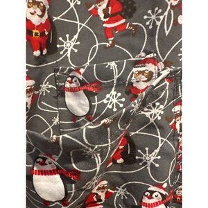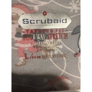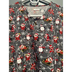 Scrubaid Women L Santa Snowman Print Stretch Top Slinky Poly Spandex Holiday