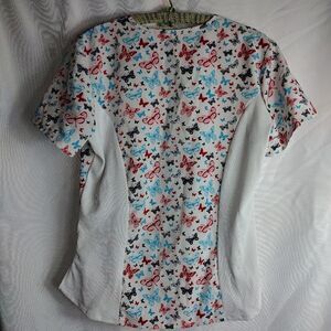 scrub top, 1/4 zip, stretch side panels. polyester spandex blend. pit to pit 22" length 26"