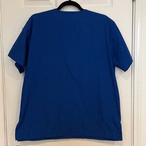Excellent condition, nice quality scrubs with lots of poclets! No holes, tears, or stains. These were used as a costume in a play that ran for 4 nights. The color is a dark royal blue. Sold as a set (1 top and 1 pair of pants). V-neck top with double topstitch, side vents; straight leg pants feature adjustable drawstring and elastic waistband. Top has one chest pocket, two patch pockets (the right patch pocket with one pencil slot), and one cell phone pocket. Pants have two front slash pockets (the right slash pocket has one inside pocket), one cargo pocket, and one cell phone pocket.