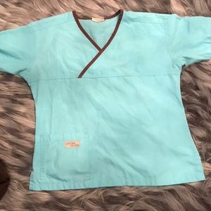 Greys Anatomy ladies scrubs, Mock Top, Drawstring with elastic back., Aqua top is made by Urban Scrubs.