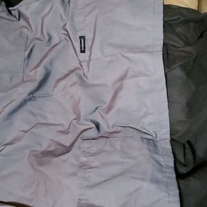 Pewter grey scrubs, never worn. cargo style with v neck top, short sleeves, elactic waist bottoms with drawstring,straight legs. top seems to fit like an xl more.. will sell separate or together. 55% cotton, 45 % polyester